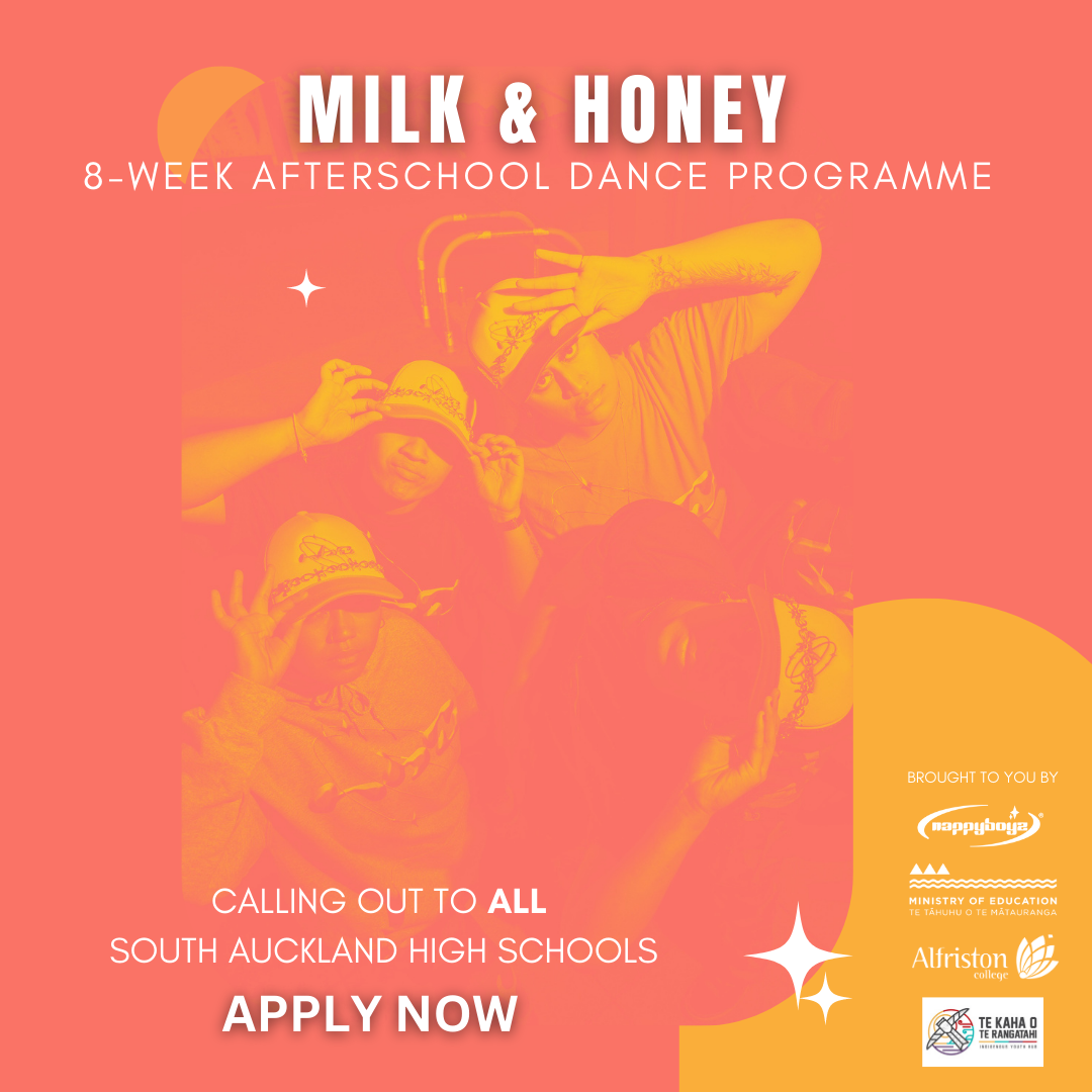 Funded by the Ministry of Education - The Milk & Honey program aims to center & value each student's holistic background through a series of workshops that reflect on their relationship to self, to place, to others & community. Students will also be educated about mental wellness techniques, facilitated by Te Kaha o Te Rangatahi.
